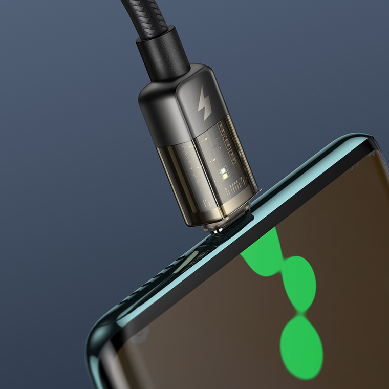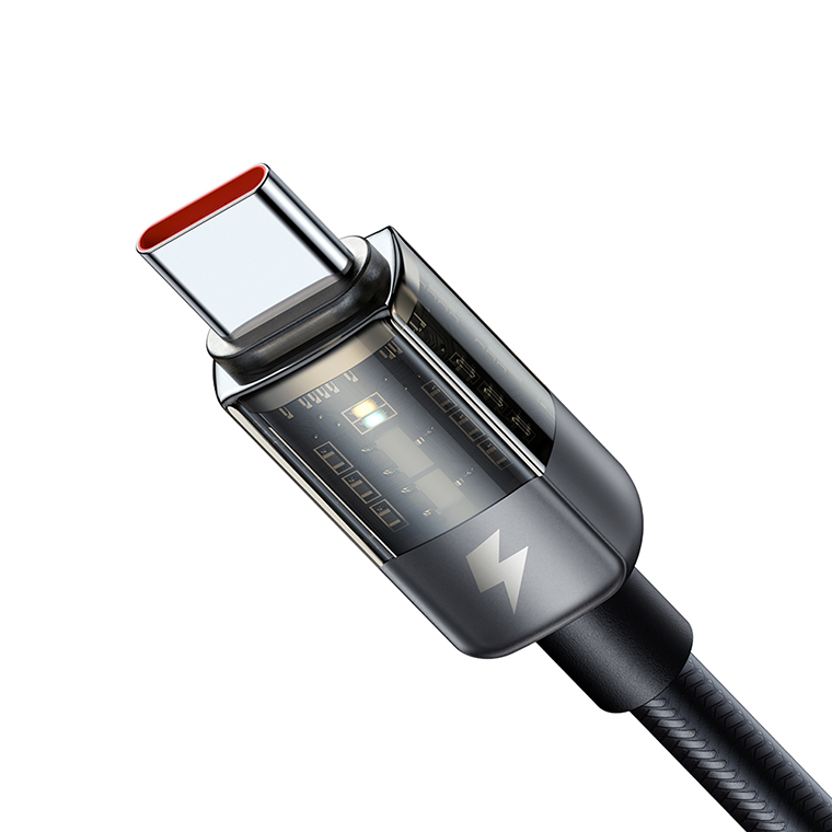 Auto Power Off Type-C 6A Super Charge Transparent Data Cable 1.2m
