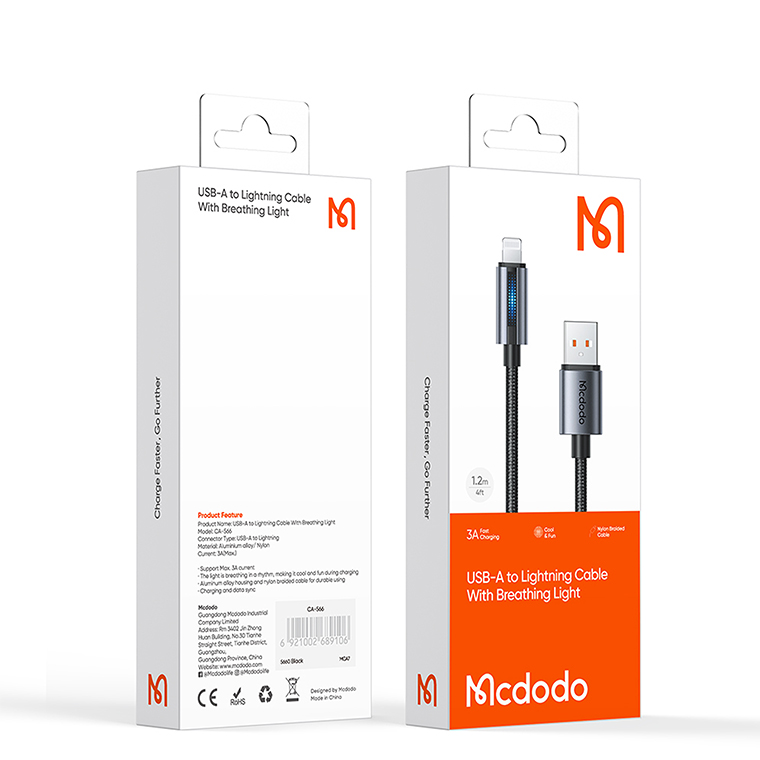 USB-A to Lightning Cable With Breathing Light 1.2m