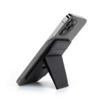 Foldable MagSafe-compatible stand and card holder with secure magnetic attachment. Supports dual portrait and landscape orientation with 5 viewing modes optimised for video calls, typing, watching movies and gaming. Centralised grip design provides full reachability of screen when texting or browsing. Slim 2-card storage with easy access and protective shield for credit cards.